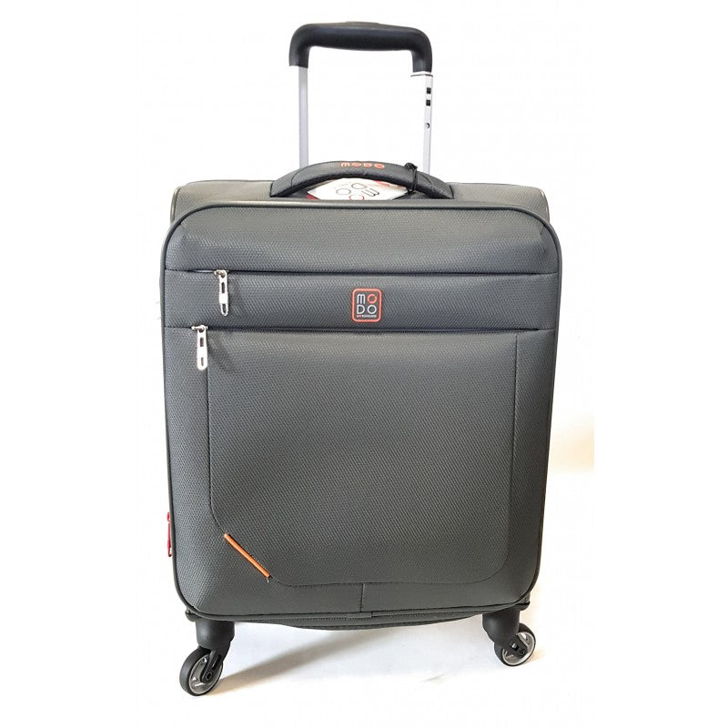 Trolley bagaglio a mano 4 ruote, leggero, espandibile con doppia tasca anteriore.